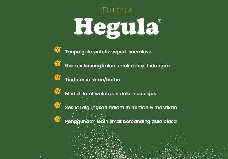 Hegula Plus+ menggunakan bahan semulajadi tanpa tambahan gula sintetik. Sesuai untuk buat minuman, masakan dan baking. Tambahan inulin iaitu serat makanan meningkatkan kebaikan Hegula yang sangat baik untuk kesihatan perut. Buah beri merah terkenal dengan “taste masking” yang boleh mengubah rasa masam kepada manis, memberi rasa yang lebih sedap dalam makanan dan minuman.